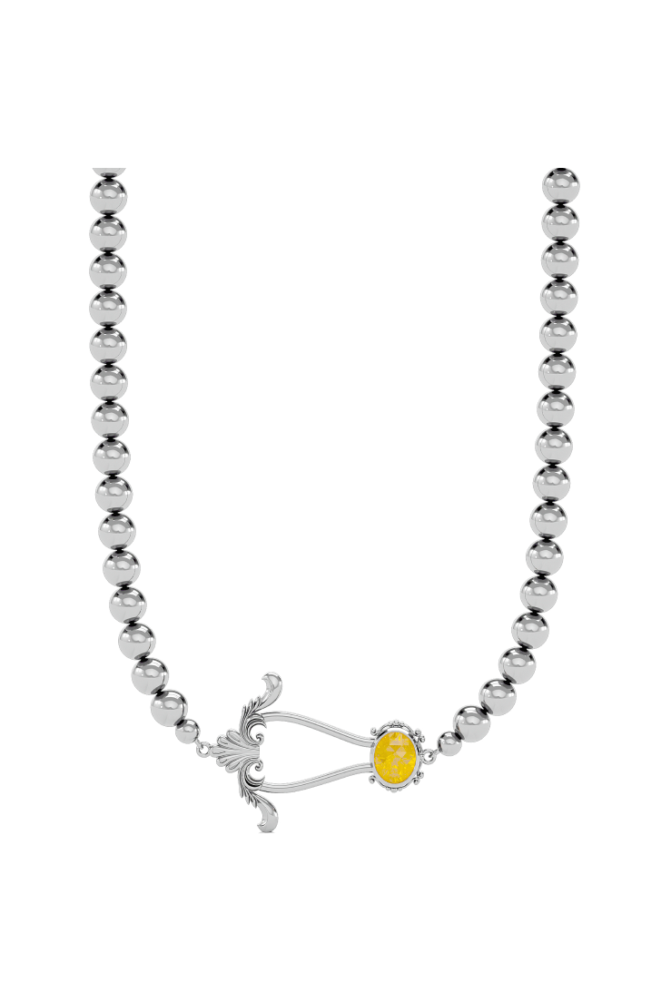 This piece is crafted from recycled metal alloy, plated with 14k white gold, making it eco-friendly. Designed in New York City and meticulously handcrafted in Jaipur, India.
